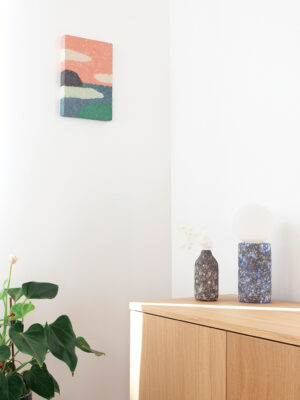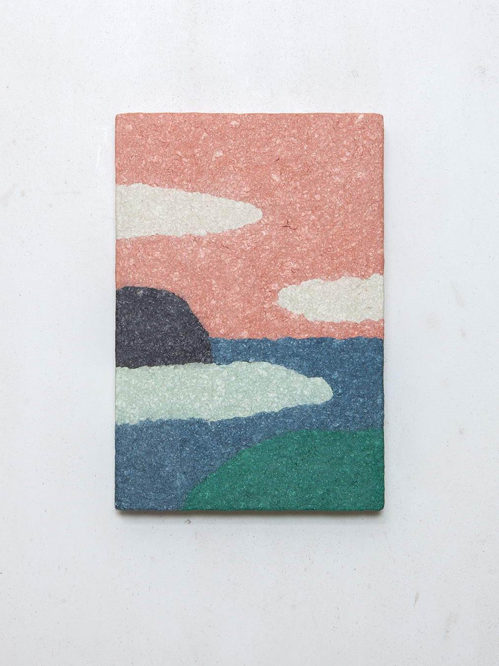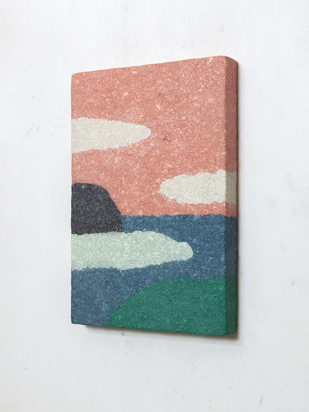 Panneau de bois, papier recyclé, colle artisanale, pigments