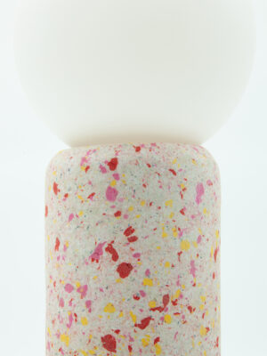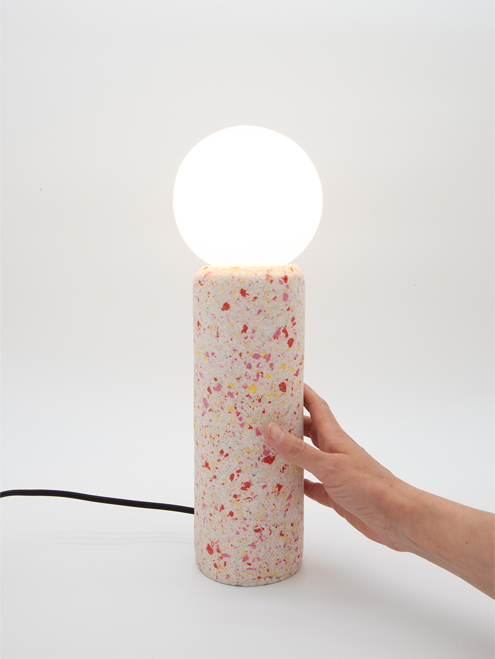 Mandrin de carton recyclé, papier coloré recyclé, colle artisanale.