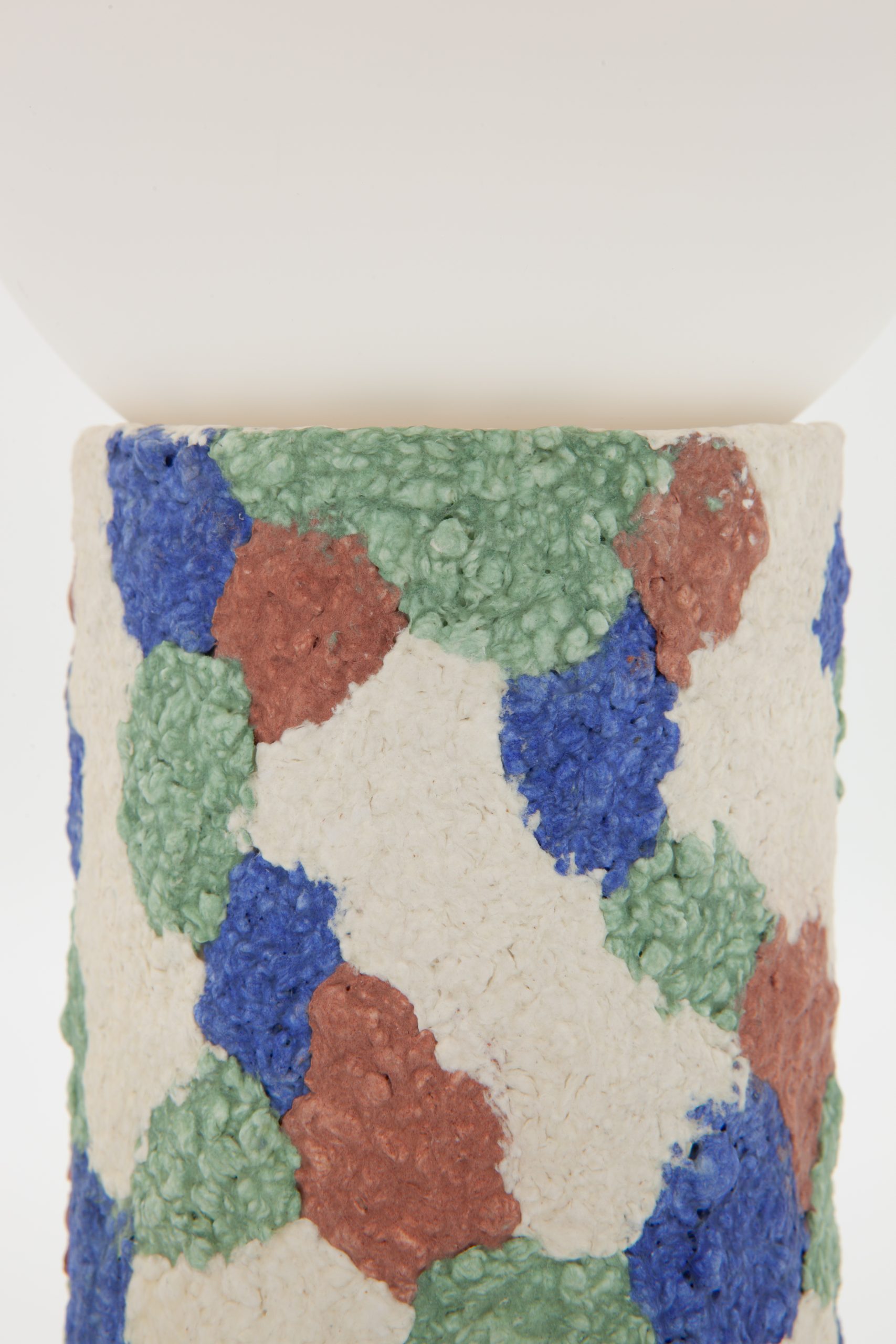 Couleur blanc, rouge brique, vert pâle, bleu – pigment terre rouge Ercolano d’Italie, terre verte Brentonico, et bleu de Cobalt